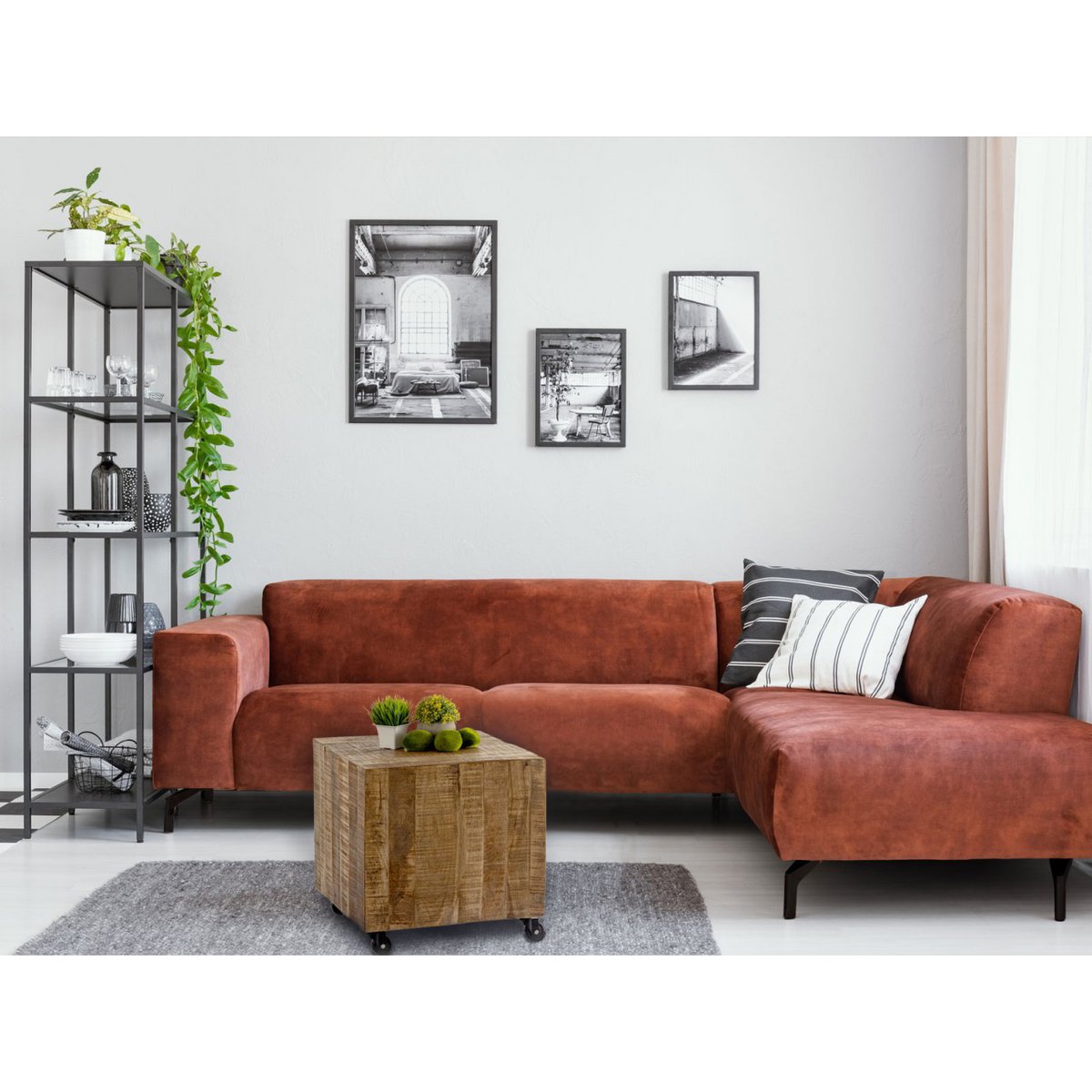 Gemaakt van massief gerecycled manghout met zwarte rolletjes. Zijn prachtige houten structuur trekt de aandacht in elke kamer!