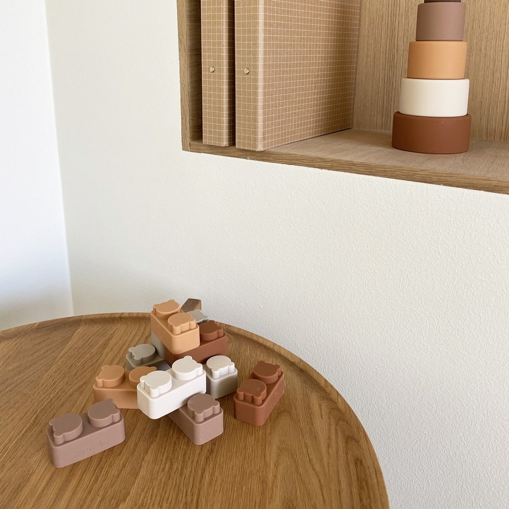 Stapel siliconen bouwstenen - 10 stuks - Bruine kleurenmix