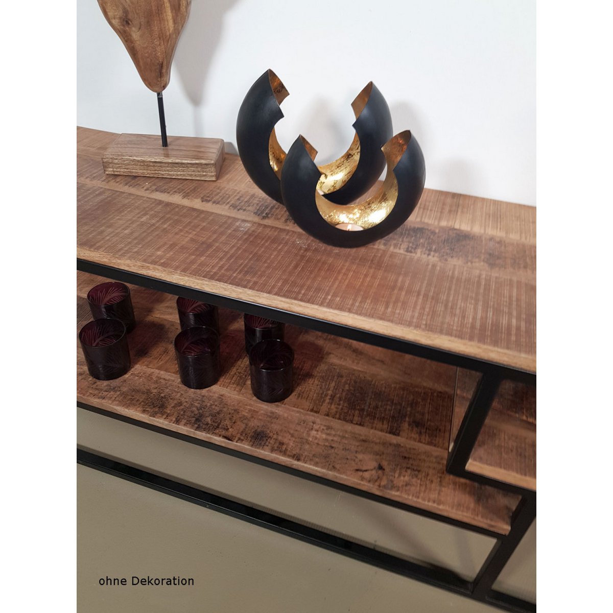 Prachtig TV-meubel voor de creatie van een moderne mix van massief oud mangohout en een zeer stabiele metalen frameconstructie. Duurzaam materiaal. dat gemakkelijk kan worden gecombineerd.