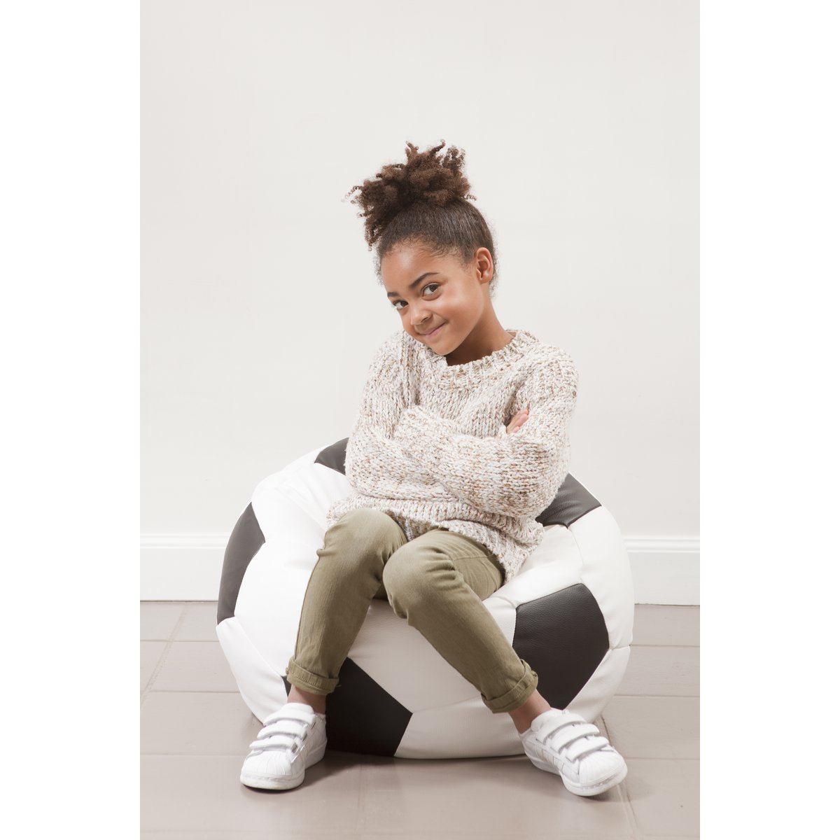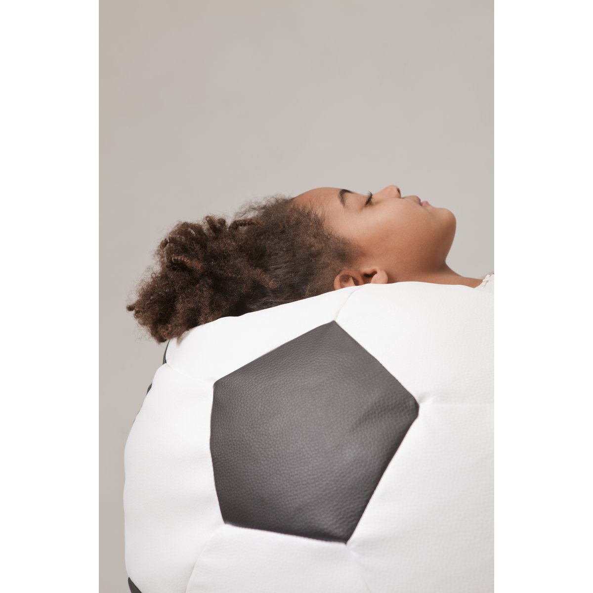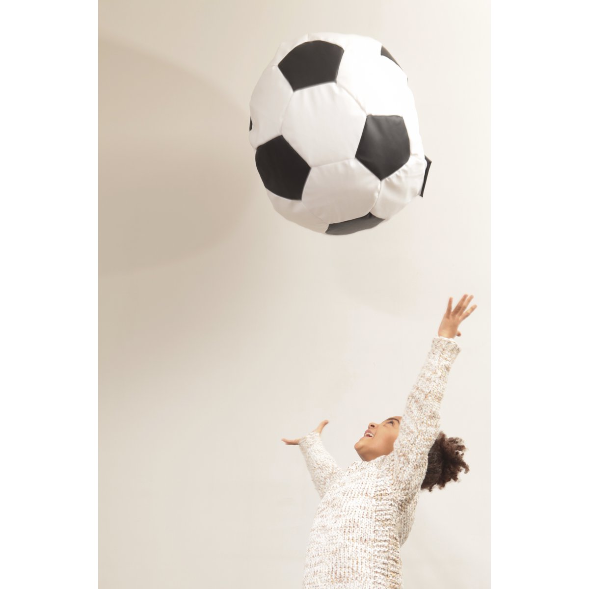 Dit is een comfortabele en speelse zitzak in de vorm van een voetbal. De zwart-witte kleurstelling geeft hem een klassieke en tijdloze uitstraling, waardoor hij goed past in verschillende interieurstijlen. De zitzak is gemaakt van een zachte en duurzame stof, waardoor hij niet alleen prettig zit, maar ook lang meegaat. Hij is ideaal voor ontspanning in huis, of om lekker op te chillen tijdens een filmavond. Dankzij zijn compacte formaat is hij bovendien makkelijk te verplaatsen en op te bergen