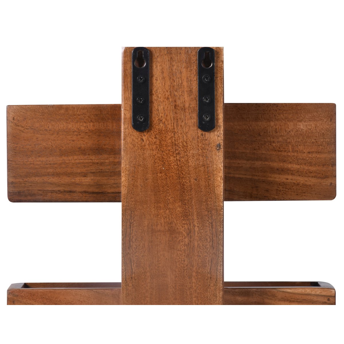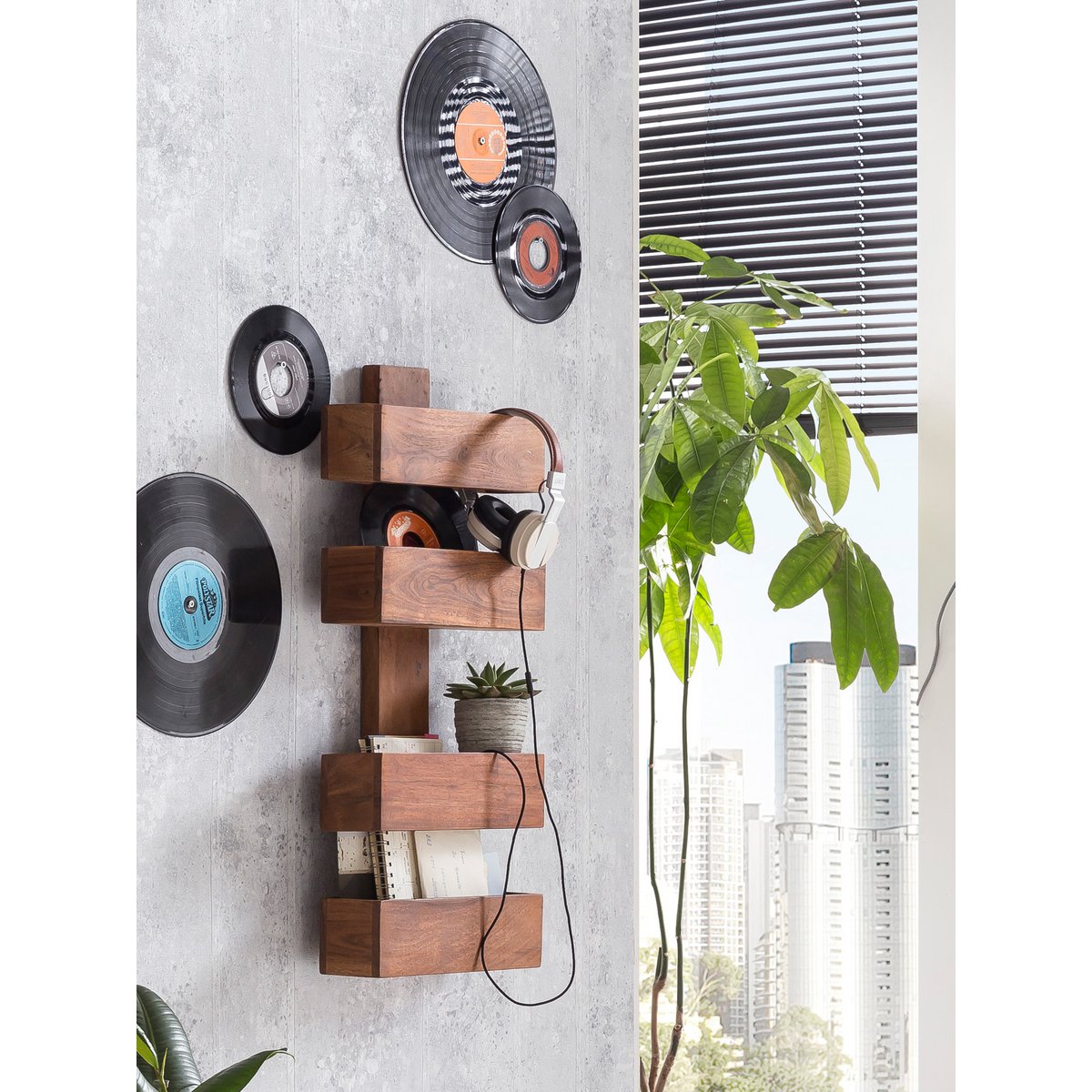 Met deze wandplank presenteer je je favoriete stukken in stijl en geef je je muren een heel bijzonder tintje. Het frame is gemaakt van mangohout. Dit ziet er niet alleen elegant uit, het is ook zeer robuust en stabiel. Dankzij de vier opbergvakken kunnen hier veel spullen opgeborgen worden die anders ongesorteerd rondslingeren. Je kunt het plankje ook in je keuken plaatsen om bijvoorbeeld alledaagse kruiden op te bergen. Ze zijn snel bij de hand en zorgen ervoor dat je kasten niet rommelig worden. Waar de wandplank ook wordt geïnstalleerd, hij is zeker een visuele blikvanger.