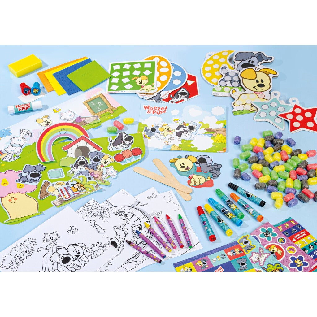 Deze Woezel en Pip knutselkoffer biedt kinderen oneindig veel knutselplezier. Laat de fantasie de vrije loop en maak je mooiste Woezel en Pip creaties. Ze kunnen aan de slag met 6 waskrijtjes, 6 stiften, super puffs, 2 stempels, 4 velletjes stickers 5 kleurplaten, lijmstift en nog veel meer.