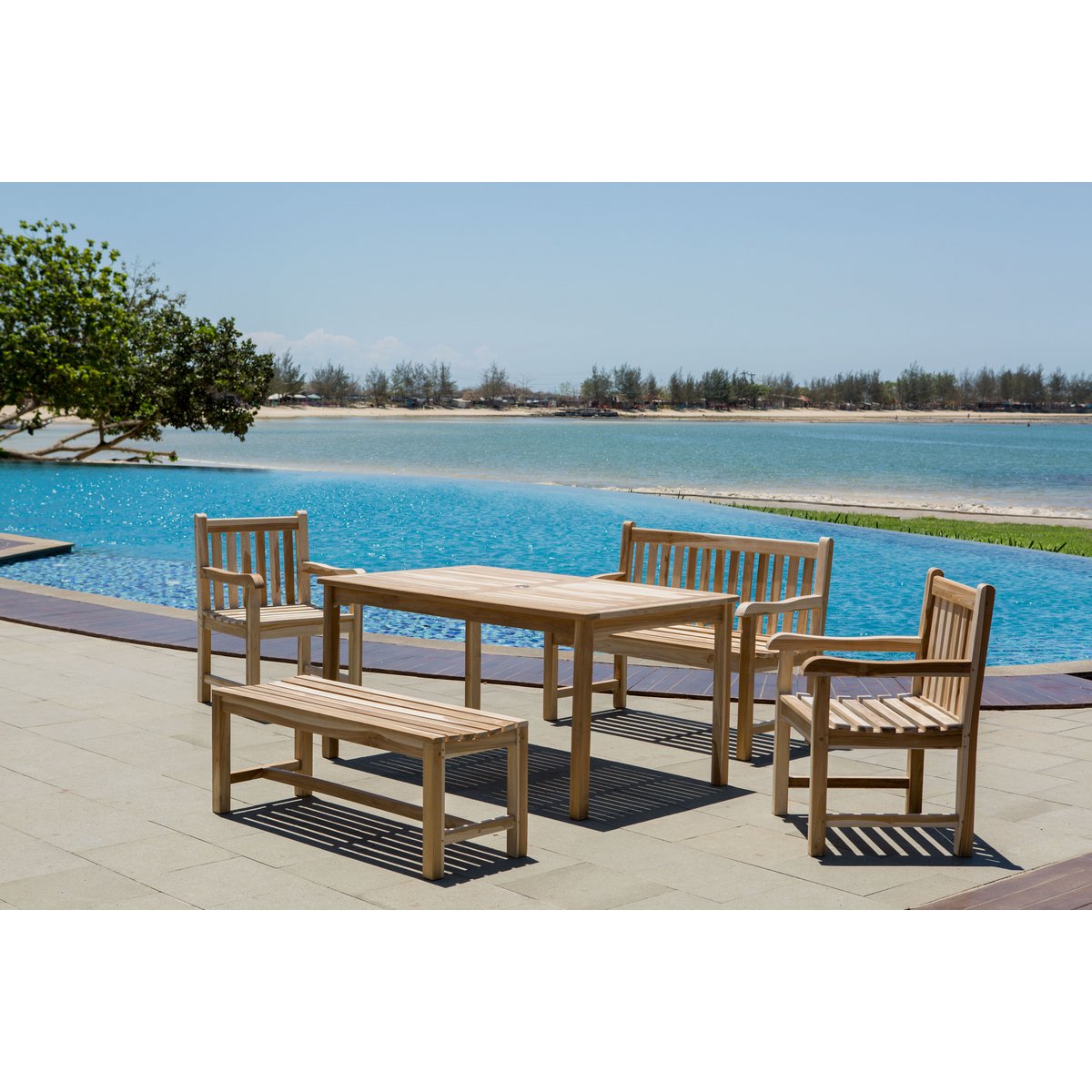 Deze exclusieve 5-delige zitset biedt u veel ruimte en comfort. Bestaande uit twee stoelen, twee banken en een tafel voldoet hij niet alleen aan de hoogste visuele normen, maar ook de gebruikte materialen voldoen aan de beste kwaliteitsnormen en zorgen voor stabiliteit en een lange levensduur. Ideaal om bij mooi weer buiten in de tuin te zitten met familie of vrienden. Voeg daar koffie en cake aan toe en de wereld is perfect. Geniet van de comfortabele zitplaatsen van deze lounge. Het stel is gemaakt van teakhout. Dit maakt de set ideaal voor buitengebruik. Uiteraard kunt u dit meubel ook in een wintertuin of woonkamer plaatsen. Waar ze ook geplaatst worden, ze roepen een aangename vakantiesfeer op en zijn zeer comfortabel.